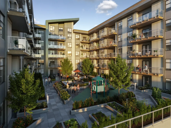 Introducing Elijah, a collection of low-rise building condos perfectly situated just two blocks from Downtown Langley and an 8-minute walk from the upcoming Skytrain station. Each residence is thoughtfully designed for optimal space and functionality, with options ranging from 1-bedroom to 3-bedroom+den suites. Residents benefit from amenities including an on-site gym, lounge, co-working office, and a communal courtyard with a children’s playground. Elijah blends connectivity with a strong sense of community, creating a vibrant living experience.