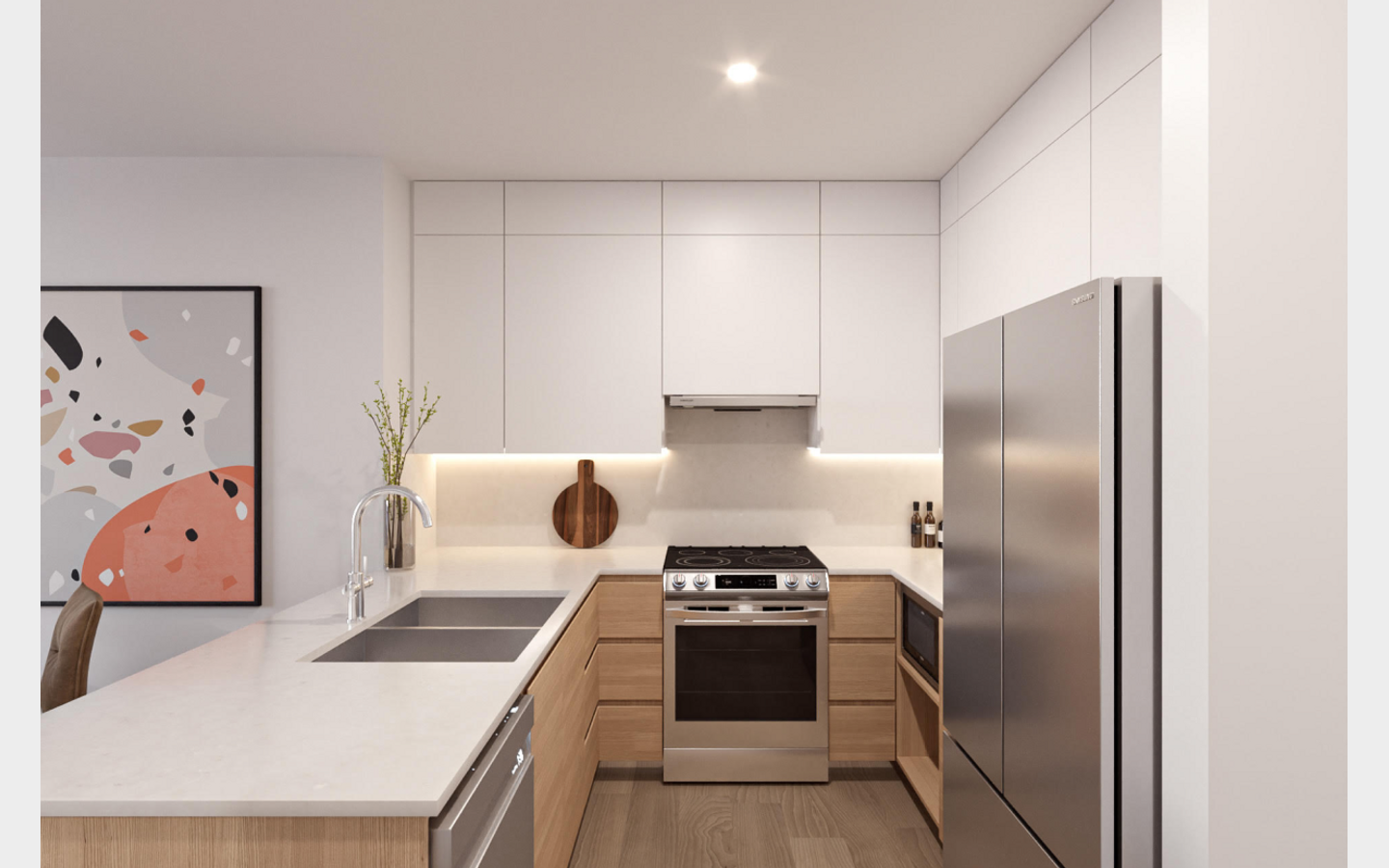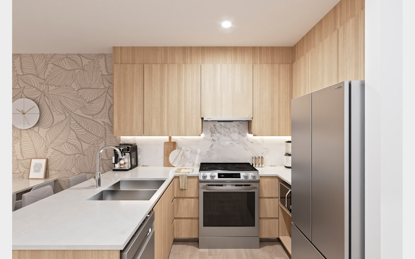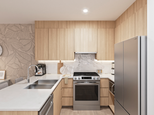 Conveniently located, OPUS is just a short drive away from popular landmarks such as the Willowbrook Shopping Centre, T&T Supermarket, and Costco. You can also explore the perfect harmony of nearby green spaces, emerging communities, and universities such as KPU, TWU, and UFV. All of which complement the rejuvenated Nicomekl neighborhood.