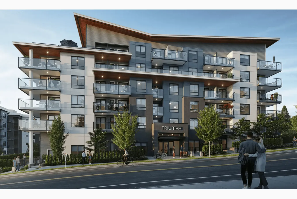 Discover Triumph, a stylish new condo community just steps from Historic Downtown Abbotsford. Offering sleek 1-bed to spacious 2-bed layouts, these thoughtfully designed homes blend modern elegance with timeless appeal. Triumph is where comfort meets style, perfect for those seeking a vibrant lifestyle in the heart of Abbotsford.